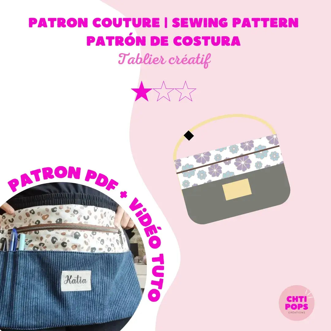 Patron de couture au format PDF pour réaliser un tablier créatif de dimensions L36 x H25 cm, doublé.